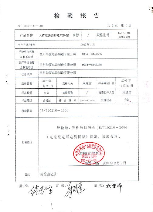 熱鍍鋅橋架檢驗(yàn)報(bào)告
